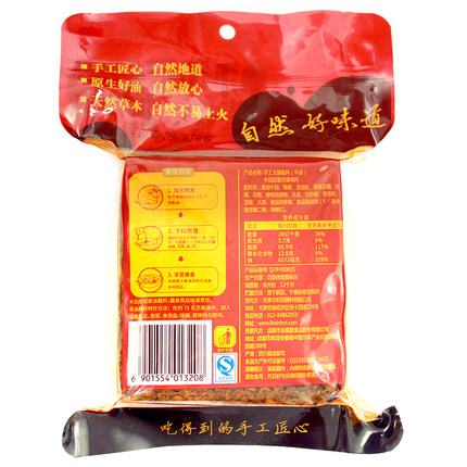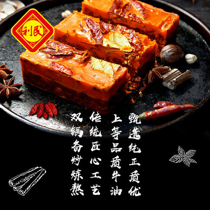 配料表:食用牛油、辣椒、食用盐、郫县豆瓣、味精、花椒、酵母抽提物、生姜、白砂糖、香辛料、豆豉、大蒜、食品用香精