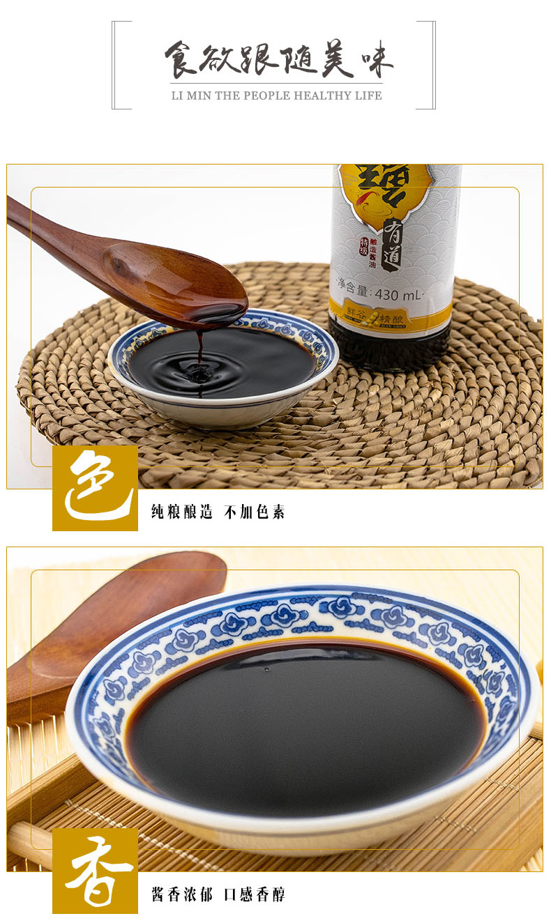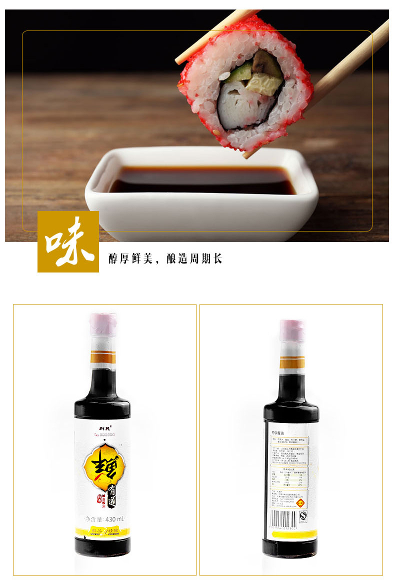 生产许可证编号:SC10312011600584产品标准号:GB 18186厂名:天津市利民调料有限公司厂址:天津空港经济区西十四道226号配料表:饮用水、黄豆、炒小麦、食用盐、食品添加剂(苯甲酸钠)储藏方法:阴凉通风干燥处,常温保存保质期:720 天食品添加剂:苯甲酸钠净含量: 860ml包装方式: 包装是否为有机食品: 否食品工艺: 酿造酱油品牌: 利民系列: 鲜有道酱油规格: 430ml*2商品条形码: 6901554012300产地: 中国大陆省份: 天津酱油类型: 生抽