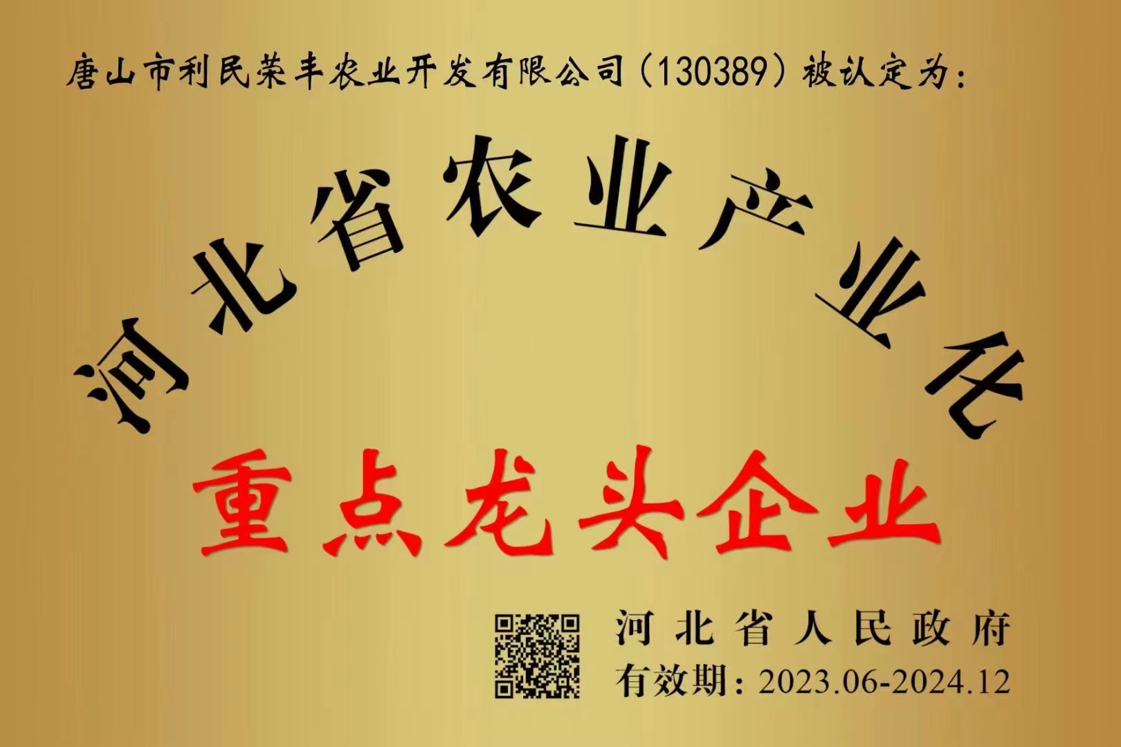 热烈祝贺唐山市利民荣丰农业开发有限公司被河北省人民政府认定为《河北省农业产业化重点龙头企业》!