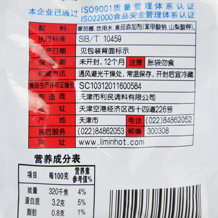 配料表:番茄酱、饮用水、食品添加剂(苯甲酸钠、山梨酸钾)