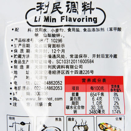 配料表:饮用水、小麦粉、食用盐、食品添加剂(苯甲酸钠、山梨酸钾)