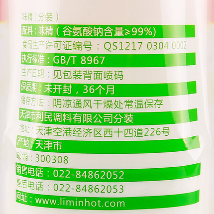 配料表:味精(谷氨酸钠含量≥99%)