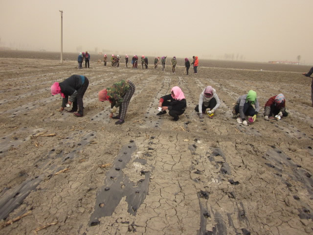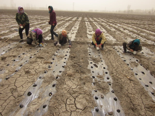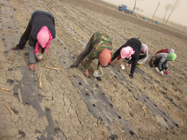 经过耕种人员的辛勤播种、盖土,直播辣椒种子出苗啦!