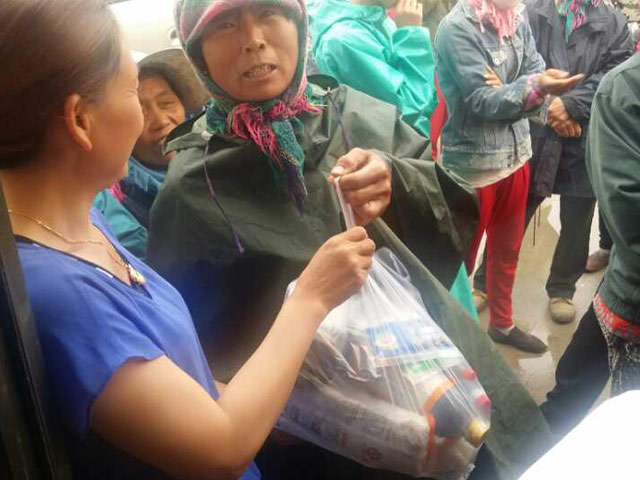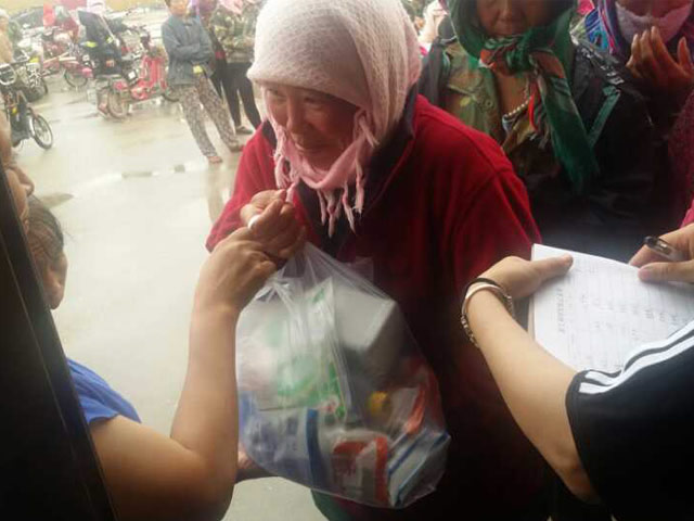 基地员工每天辛苦劳作,昨天下午张总冒雨为大家发放福利