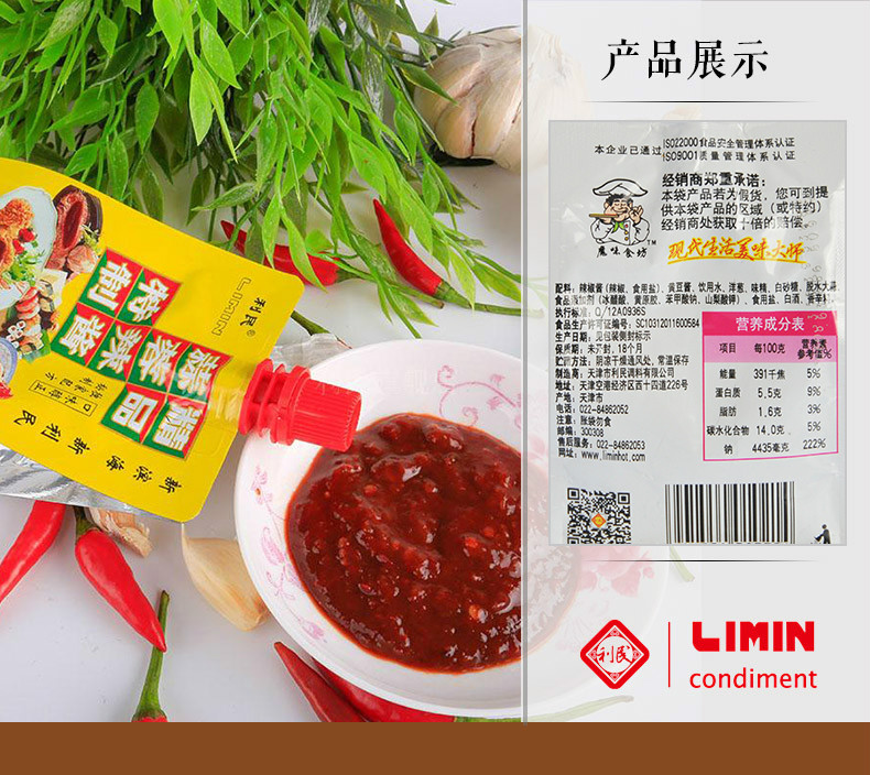 生产许可证编号:SC10312011600584 产品标准号:Q/12A0936S 厂名:天津市利民调料有限公司 厂址:天津空港经济区西十四道226号 配料表:辣椒酱(辣椒、食用盐)、黄豆酱、饮用水、洋葱、白砂糖、味精、脱水大蒜、食品添加剂(冰醋酸、黄原胶、苯甲酸钠、山梨酸钾)、食用盐、白酒、香辛料 储藏方法:阴凉干燥通风处常温保存 保质期:540 天 食品添加剂:冰醋酸、黄原胶、苯甲酸钠、山梨酸钾 净含量: 198g 包装方式: 包装 是否为有机食品: 否 调味料: 其他/other 品牌: 利民 系列: 利民蒜蓉辣酱 规格: 198g 商品条形码: 6901554010214 特产品类: 利民蒜蓉辣酱