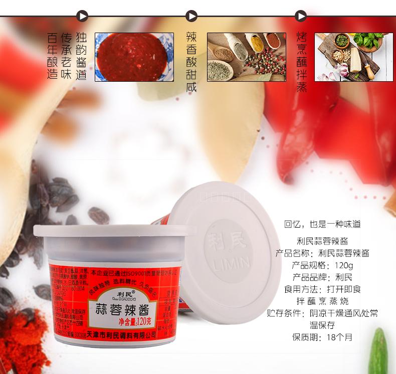 生产许可证编号:SC10312011600584产品标准号:Q/12A0936S厂名:天津市利民调料有限公司厂址:天津空港经济区西十四道226号配料表:辣椒酱(辣椒、食用盐)、黄豆酱、饮用水、洋葱、白砂糖、味精、脱水大蒜、食品添加剂(冰醋酸、黄原胶、苯甲酸钠、山梨酸钾)、食用盐、白酒、香辛料储藏方法:阴凉干燥通风处,常温保存保质期:540 天食品添加剂:冰醋酸、黄原胶、苯甲酸钠、山梨酸钾净含量: 120g包装方式: 包装品牌: 利民是否为有机食品: 否商品条形码: 6901554790000特产品类: 利民蒜蓉辣酱