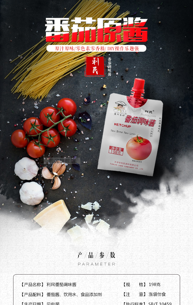生产许可证编号:SC10312011600584产品标准号:SB/T 10459厂名:天津市利民调料有限公司厂址:天津空港经济区西十四道226号配料表:番茄酱、饮用水、食品添加剂(苯甲酸钠、山梨酸钾)储藏方法:通风避光干燥处常温保存,开封后宜冷藏保质期:365 天食品添加剂:苯甲酸钠、山梨酸钾净含量: 990g包装方式: 包装品牌: 利民是否为有机食品: 否商品条形码: 6901554010221